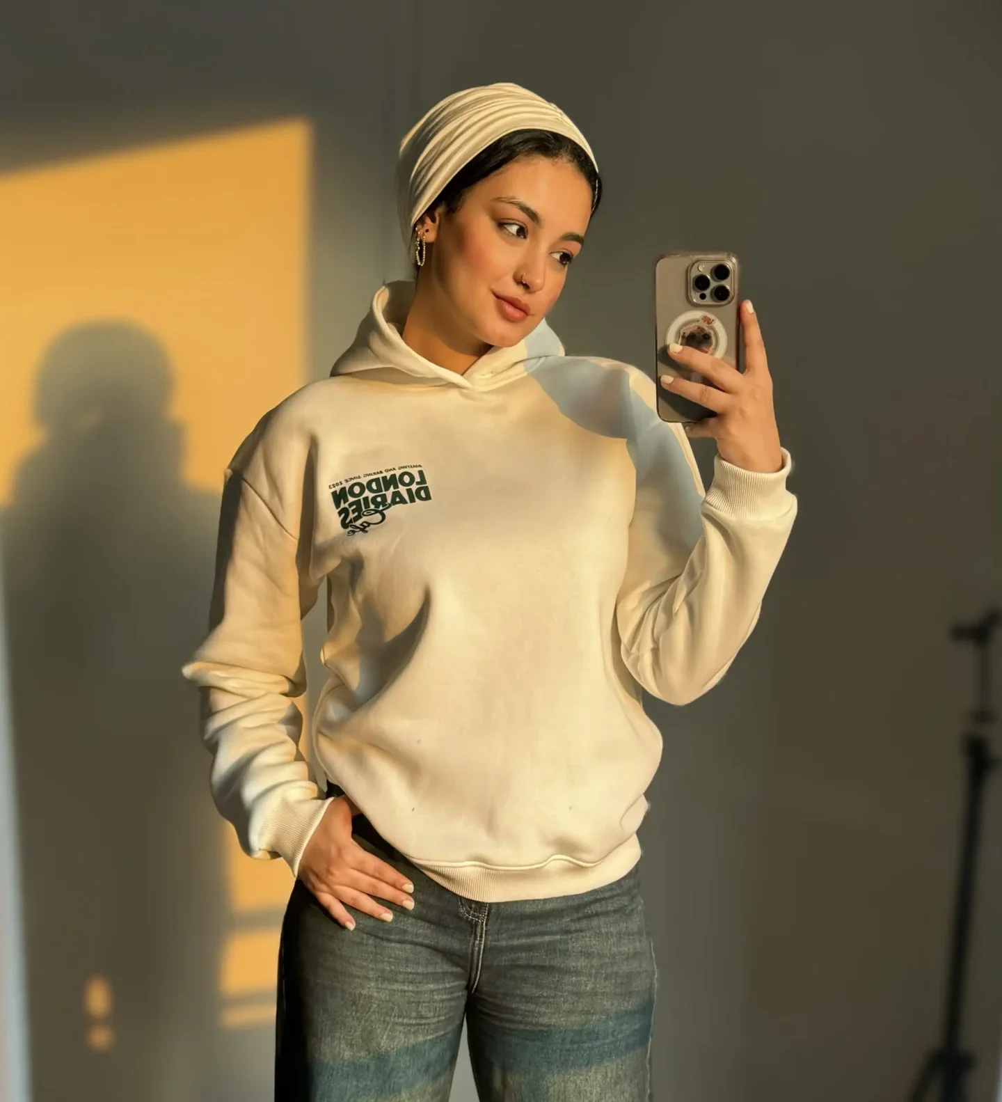 لو بتدوري على حاجة كاجوال شيك ومريحة في نفس الوقت، هودي “London Diaries” هو الاختيار المثالي ليكي! 💫