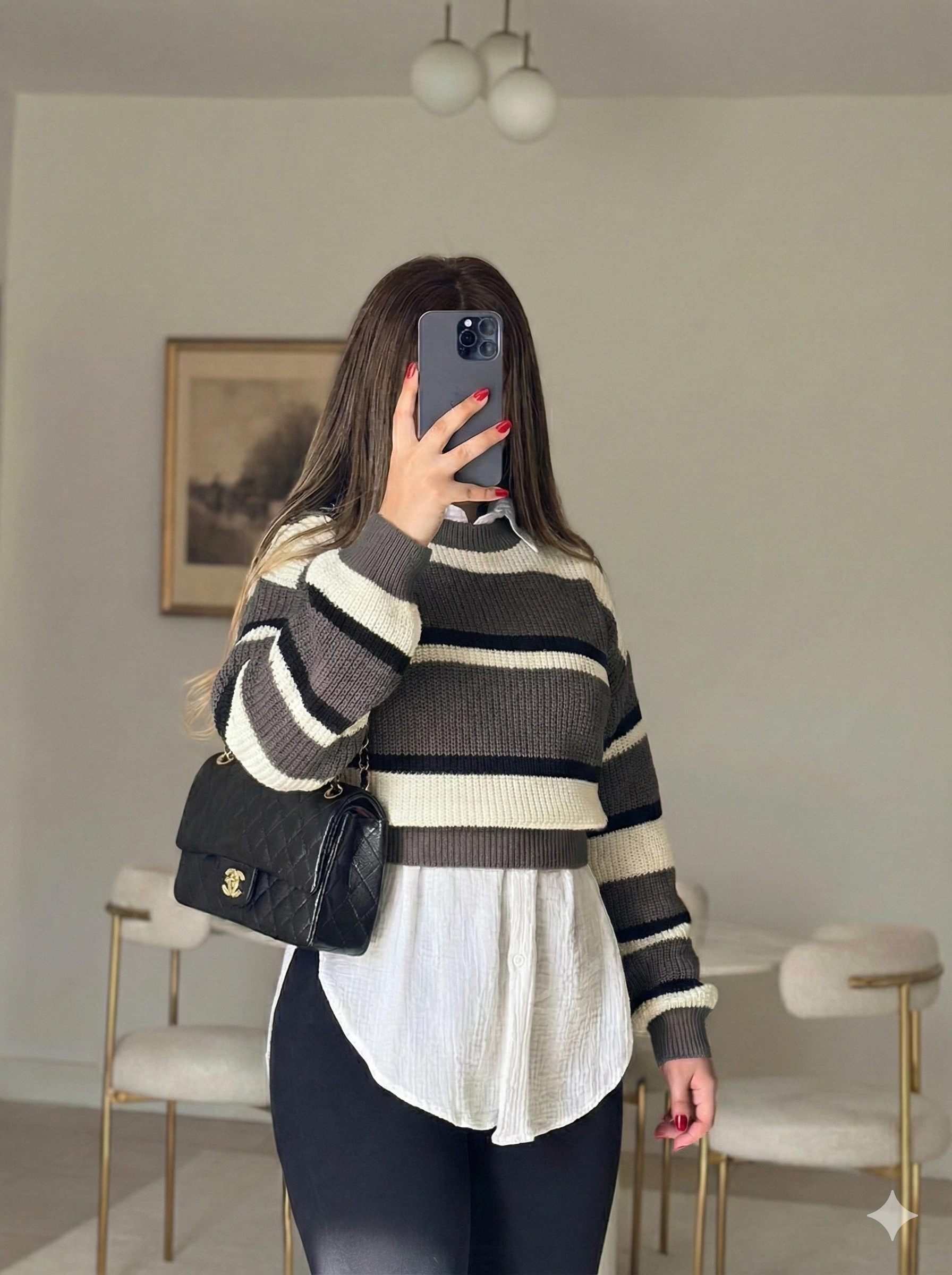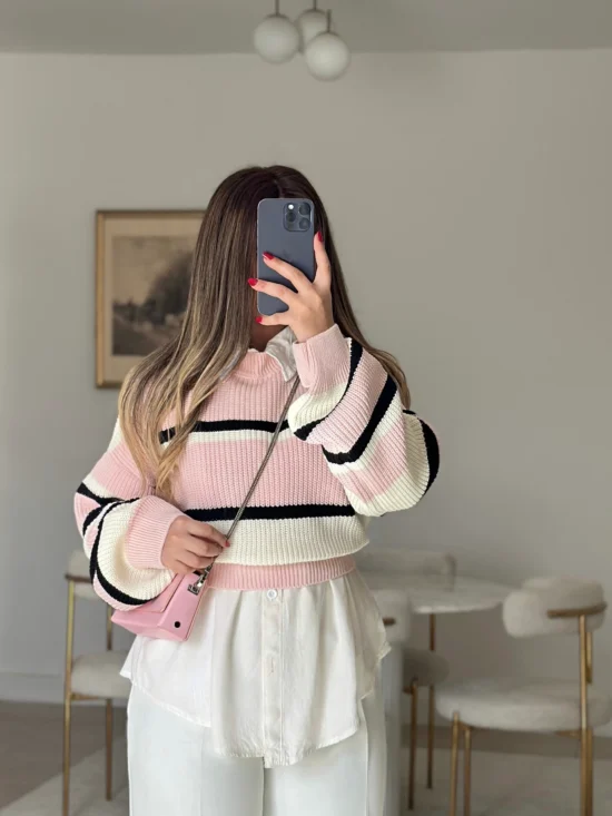 بلوفر مقلم بألوان متعددة 🧶 خامة صوف تركي مستورد، مناسب للدفا والشياكة